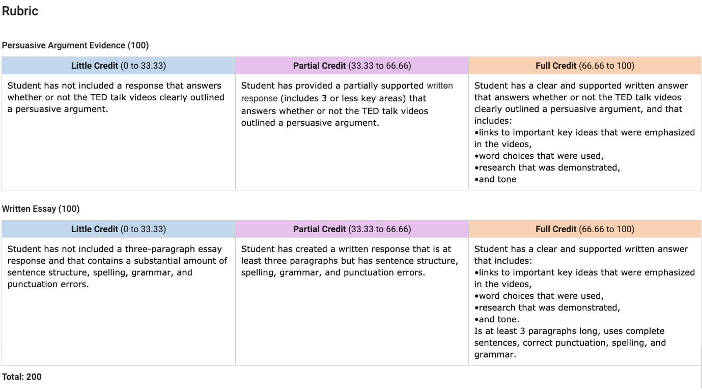 - Complete a written essay that evaluates whether or not the TED Talk videos support a persuasive argument.