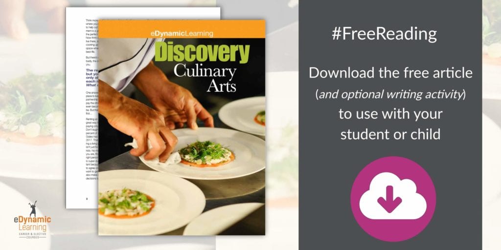 April 25, 2020Get students exploring careers in the field of culinary arts! The following article and optional activity is part of our 10-day, Discovery article series. The articles provided are exclusive content of eDynamic Learning provided for teachers and students to read expository text around various topics that are geared towards high school students. The optional, follow-up lesson activity is a way for students to extend their exploration of expository writing essays as they are a requirement for K-12 students, as outlined by the standards.
