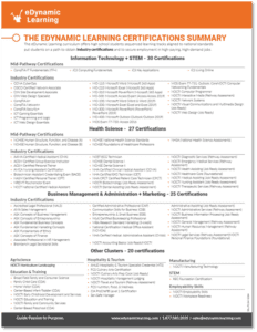 *Certification Exams are third-party property and subject to change. eDynamic Learning pathway alignment and course sequences do not guarantee that exams will be available in the future. Exam availability is at the sole discretion of the third-party providers.