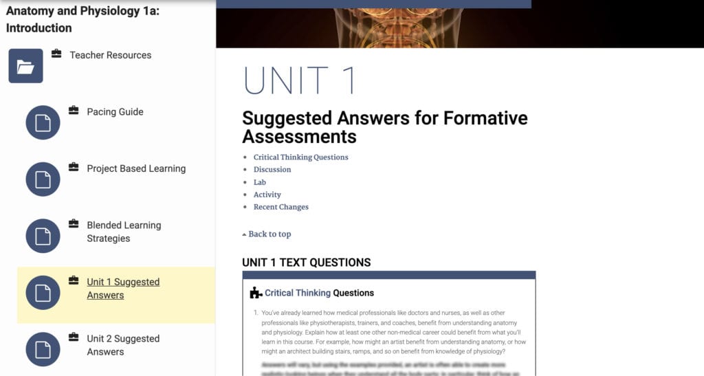 - Allows for teachers to easily access documents, such as Answer Keys, Pacing Guides, Project Based Learning Guides, and Blended Learning Strategies.