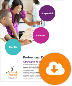 As a teacher-founded company, our mission at eDynamic Learning is to partner with you to ensure you get the most important ROI — your Return on Instruction. We provide personalized professional development experiences to ensure you are equipped with the most relevant, research-based, teaching methods and strategies.
